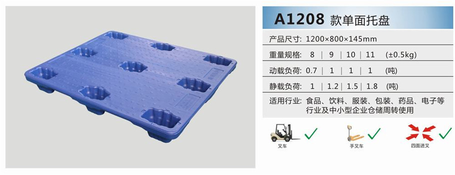 手动叉车、机动叉车均可使用;不可堆垛与可放货架;