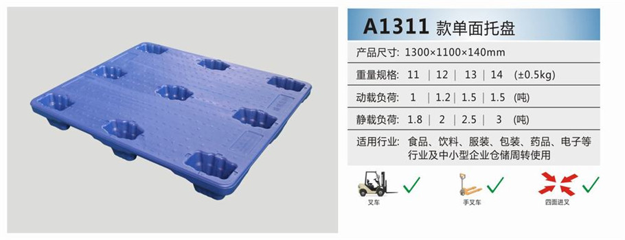 手动叉车、机动叉车均可使用;不可堆垛与可放货架;
